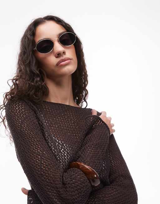 Mango – Sonnenbrille mit Metallrahmen in Goldoptik