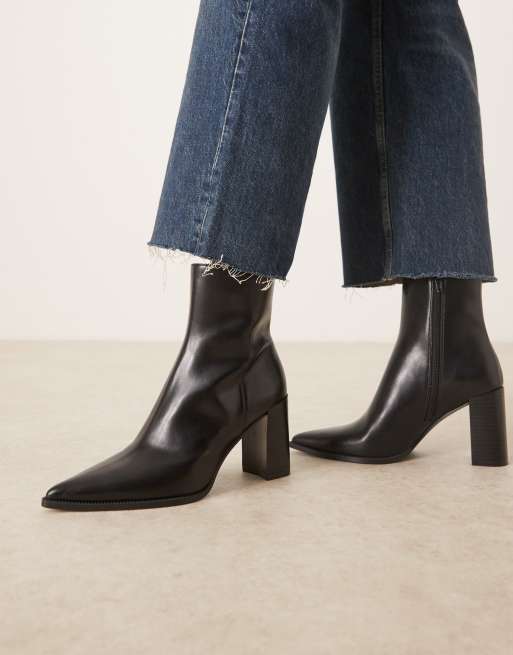 Mango – Stiefeletten aus Kunstleder in Schwarz mit Absatz und spitzer Zehenpartie