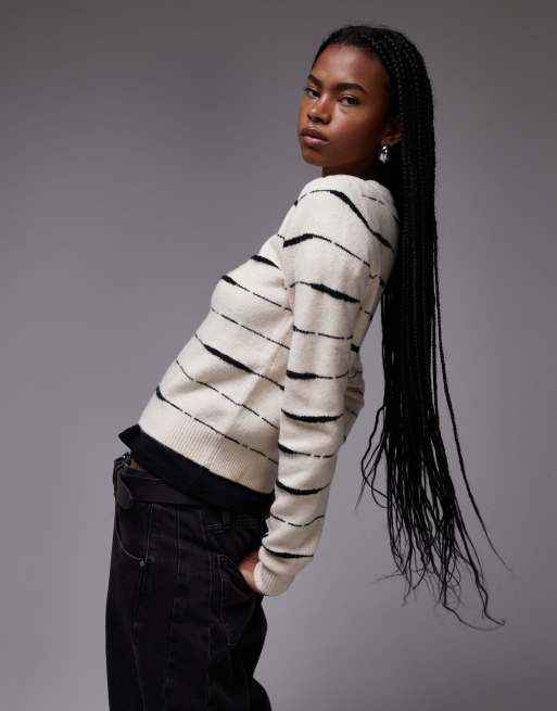 Mango – Strickpullover in Weiß mit Tiger-Streifen