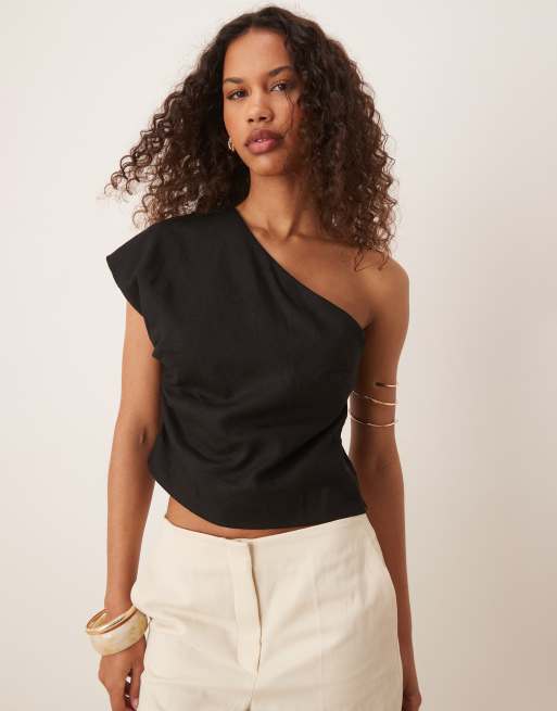 Mango – Tailliertes Oberteil in Schwarz mit One-Shoulder-Träger