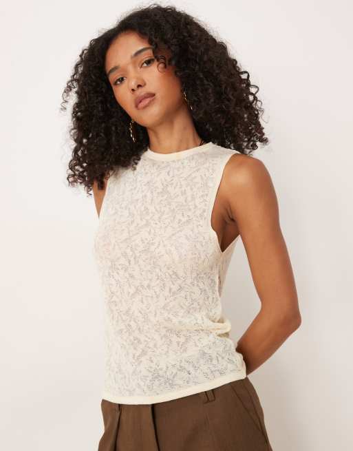 Mango – Tanktop aus Feinstrick in Elfenbeinweiß