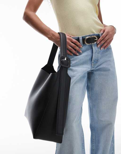 Mango – Tasche in Schwarz mit Schnallendetail und verstellbarem Riemen