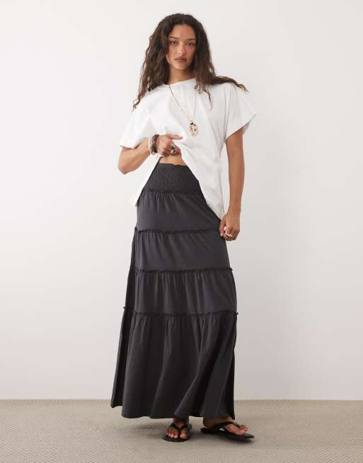 Mango – Teen – Gestufter Maxirock in Anthrazit