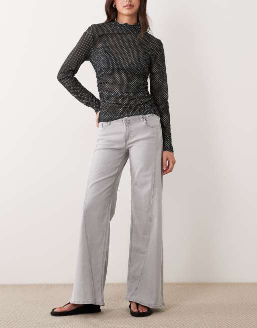 Mango – Teen – Jeans in Hellgrau mit weitem Bein