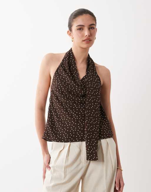 Mango – Trägertop in gepunktetem Braun mit Bindedetail