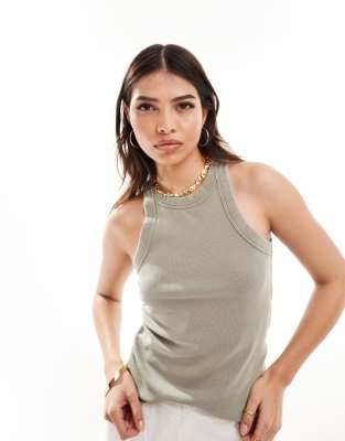 Mango – Trägertop in verwaschenem Khaki mit Racer-Schnitt