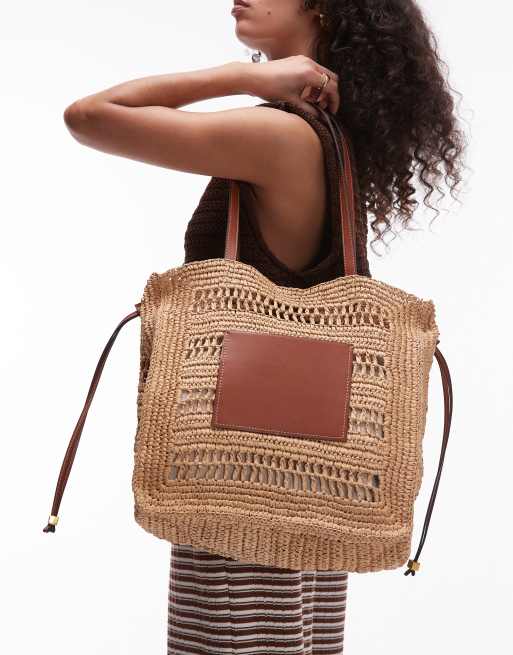 Mango – Tragetasche aus gewebtem Stroh in Hellbraun