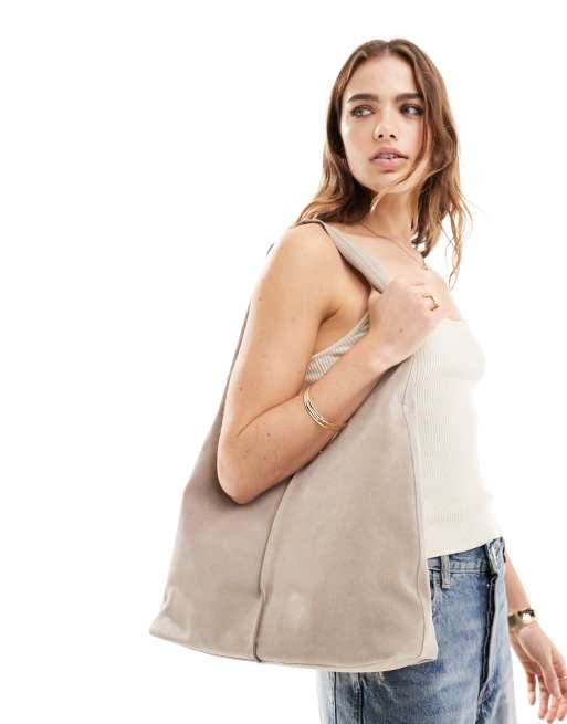 Mango – Tragetasche aus Wildleder in Hellgrau