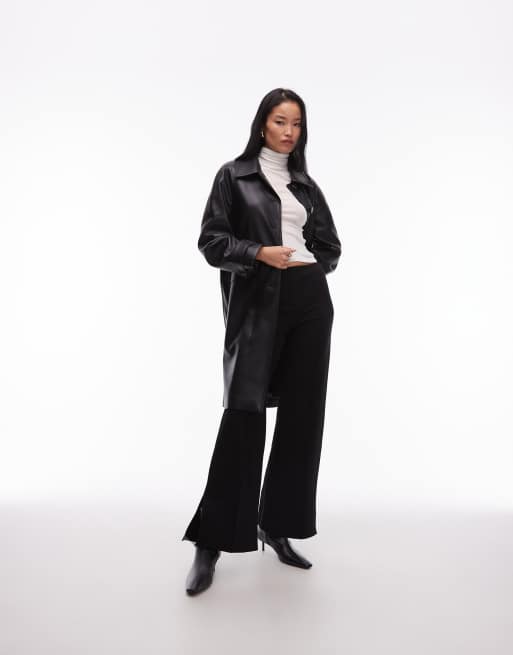 Mango – Trenchcoat aus schwarzem Kunstleder mit Gürtel