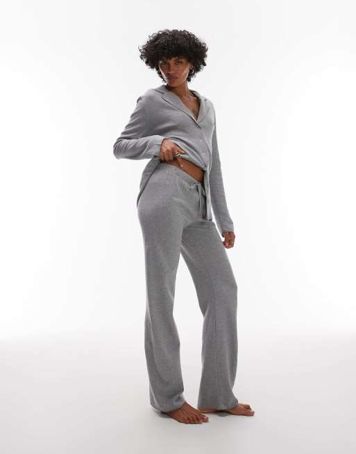 Mango – Weiche, weit geschnittene Pyjama-Hose aus gebürsteter Baumwolle in Grau, Kombiteil