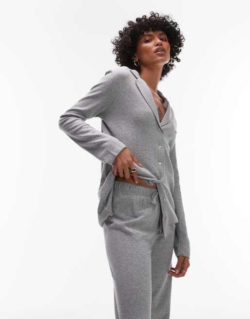 Mango – Weiches Pyjama-Hemd aus gebürsteter Baumwolle in Grau, Kombiteil