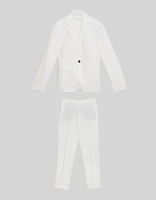 Mango – Weißes Leinen-Anzugset mit Blazer und Hose