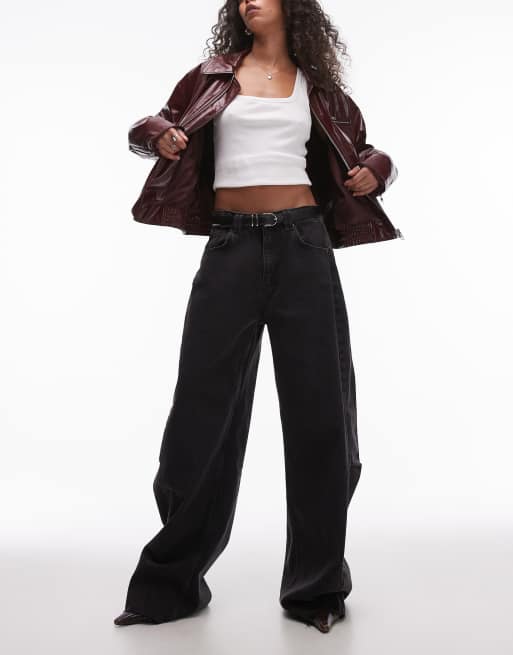 Mango – Weite Oversize-Jeans in Schwarz mit ausgefranstem Saum