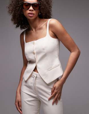 Mango – Weste in beiger Leinenoptik mit eckigem Ausschnitt, Kombiteil
