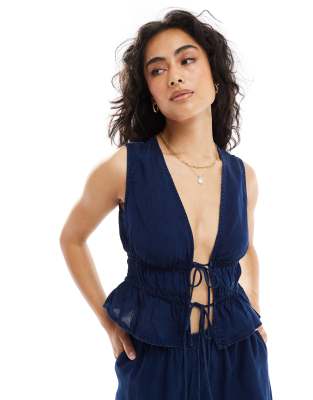 Mango – Weste in Dunkelblau mit Bindeband vorne, Kombiteil
