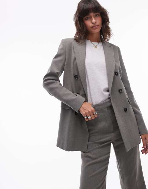 Mango – Zweireihiger Oversize-Blazer in Hellgrau, Kombiteil