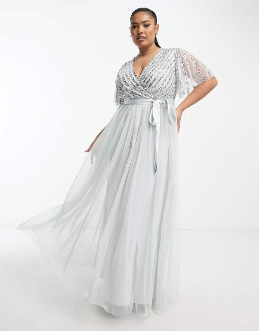 Maya Bridesmaid Plus – Maxi-Brautjungfernkleid in Blassgrau mit Paillettenstreifen