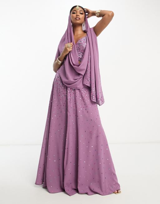 Maya – Lehenga – Maxirock in Flieder mit 3D-Pailletten, Kombiteil