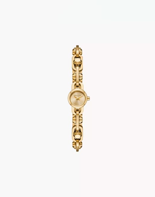 Michael Kors – MK Astor – Damenuhr aus goldfarbenem Edelstahl mit zwei Zeigern und Kettenarmband