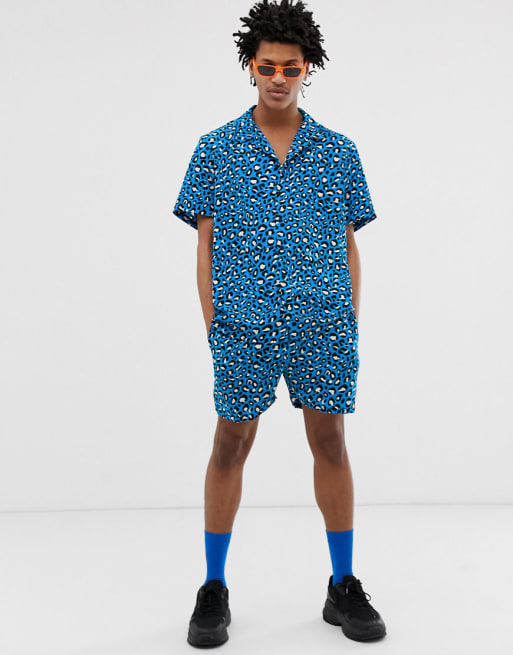 Milk It – Blaues Vintage-Hemd mit Revers und Shorts mit Leoprint, Kombi