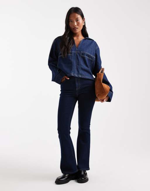 Miss Selfridge Petite – Ausgestellte Jeans in indigoblauer Waschung