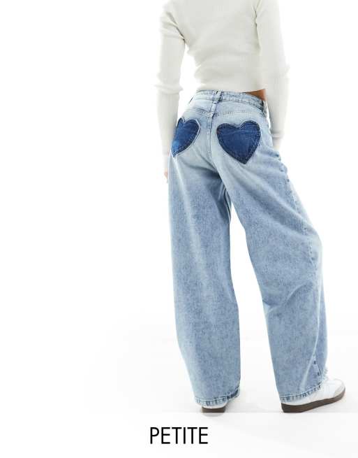 Miss Selfridge Petite – Baggy-Jeans in Acid-Waschung mit Herztaschen