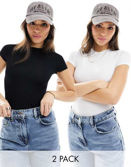 Miss Selfridge – 2er-Pack T-Shirt-Bodys in Schwarz und Weiß