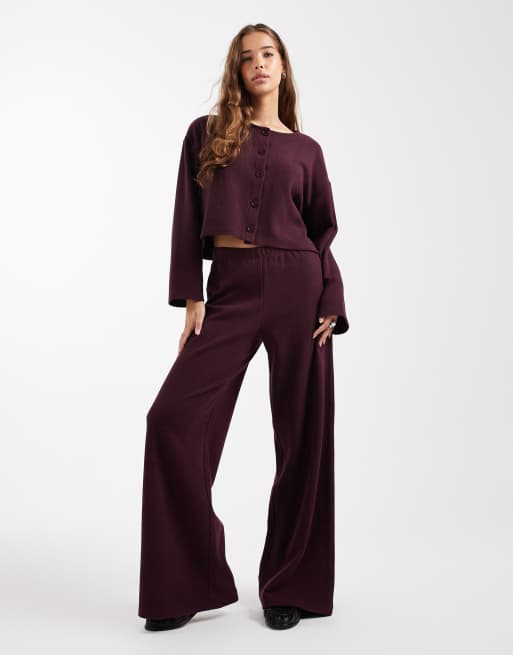 Miss Selfridge – Angerautes, geripptes Set in Pflaume