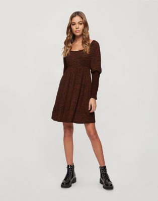 Miss Selfridge – Ausgestelltes Minikleid in Rot mit Blümchenmuster