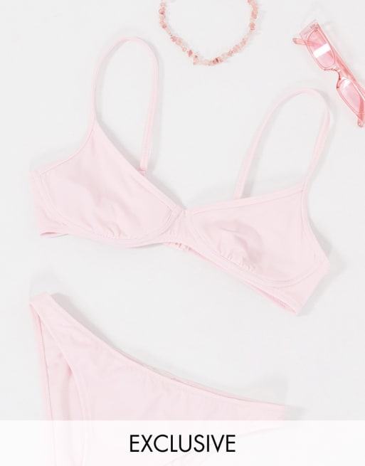 Miss Selfridge – Bikini mit Bügeln in Blassrosa