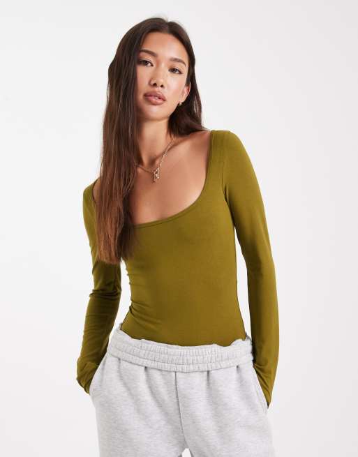 Miss Selfridge – Body in Olivgrün mit weitem U-Ausschnitt