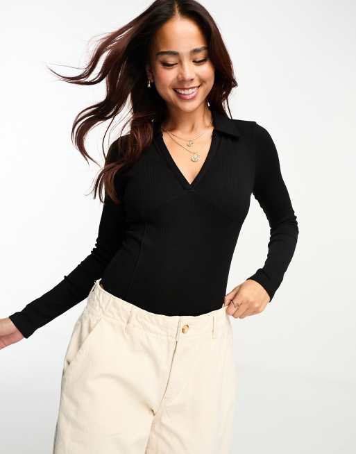 Miss Selfridge – Body in Schwarz mit Korsett-Ziernaht und Kragen