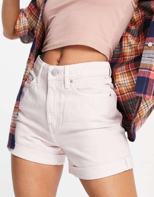 Miss Selfridge – Boyfriend-Shorts mit hoher Taille in Rosa