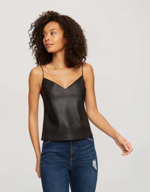 Miss Selfridge – Camisole aus Kunstleder in Schwarz