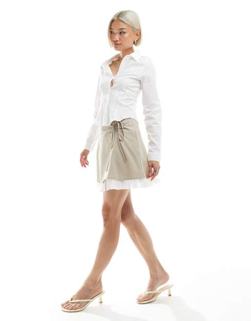 Miss Selfridge – Eleganter Minirock in Steinbeige mit Rüschensaum
