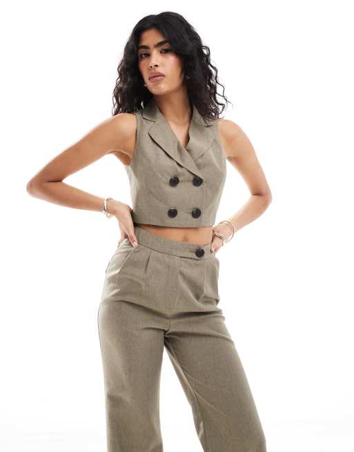 Miss Selfridge – Elegantes Westen-Oberteil in Khaki, Kombiteil