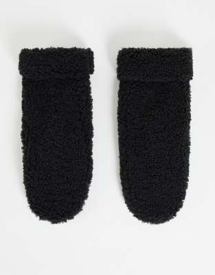 Miss Selfridge – Fäustlinge aus Teddyfell in Schwarz