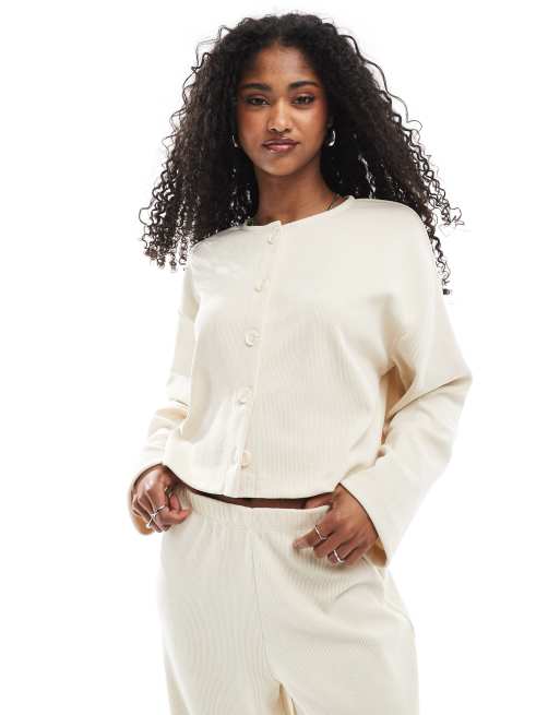 Miss Selfridge – Gerippte Strickjacke in Elfenbeinweiß