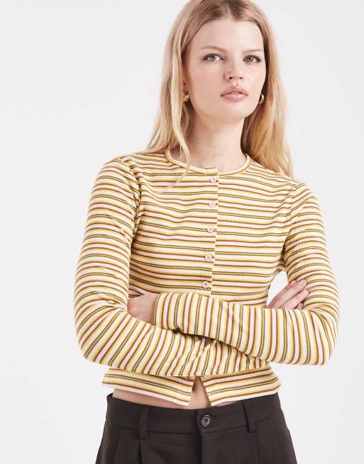 Miss Selfridge – Gestreiftes Polo-Oberteil mit Knopfleiste
