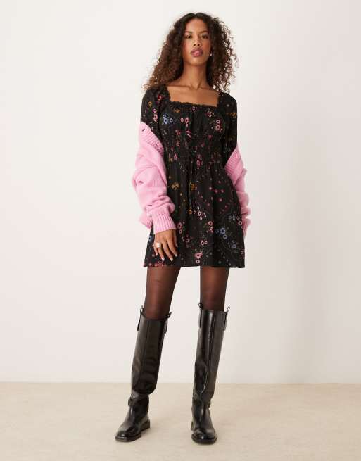 Miss Selfridge – Gestuftes Minikleid mit Blumen-Kachelmuster