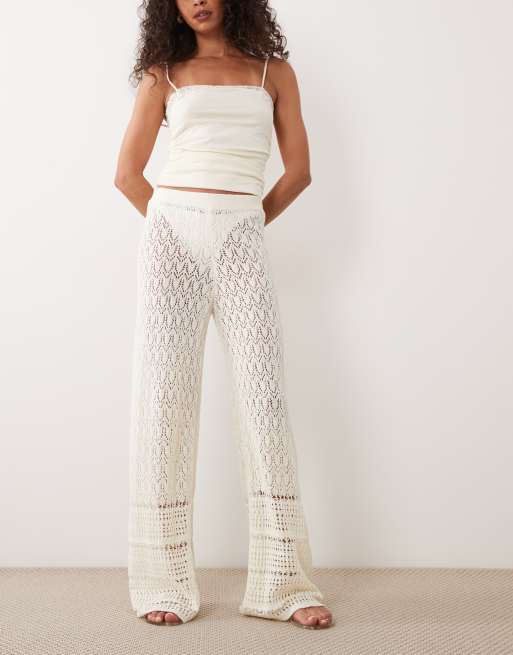 Miss Selfridge – Häkel-Hose in Cremeweiß mit weitem Bein