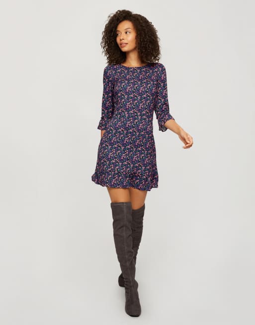 Miss Selfridge – Hängerkleid mit Rüschensaum und Blümchenmuster in Lila