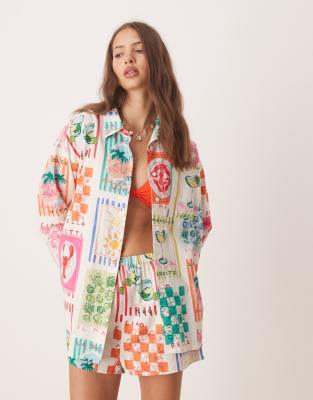 Miss Selfridge – Hemdbluse mit Freizeitprint, Kombiteil