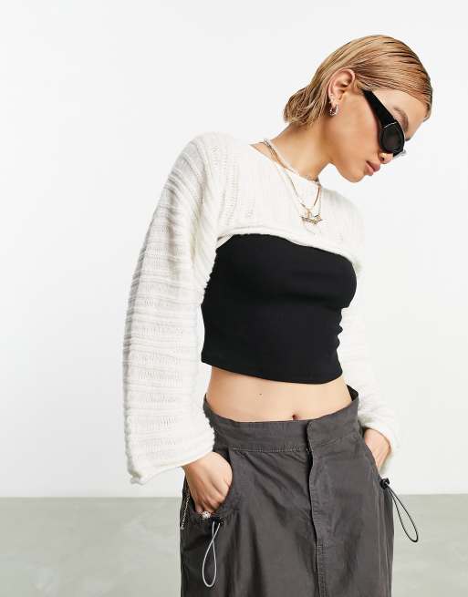 Miss Selfridge – Holey – Superkurz geschnittener Pullover in Creme