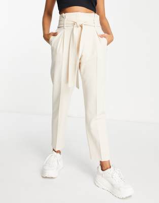Miss Selfridge – Hose in Stein mit Paperbag-Taille