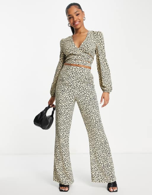Miss Selfridge – Hose mit ausgestelltem Bein und Tierfellmuster, Kombiteil