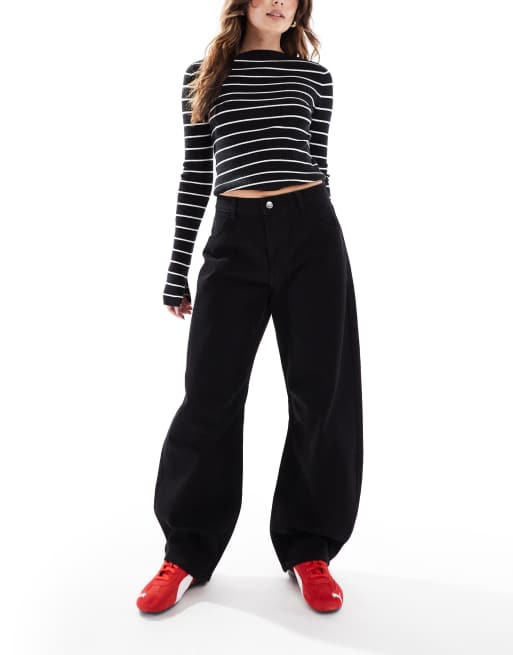Miss Selfridge – Jeans in Schwarz mit Barrel-Leg-Schnitt