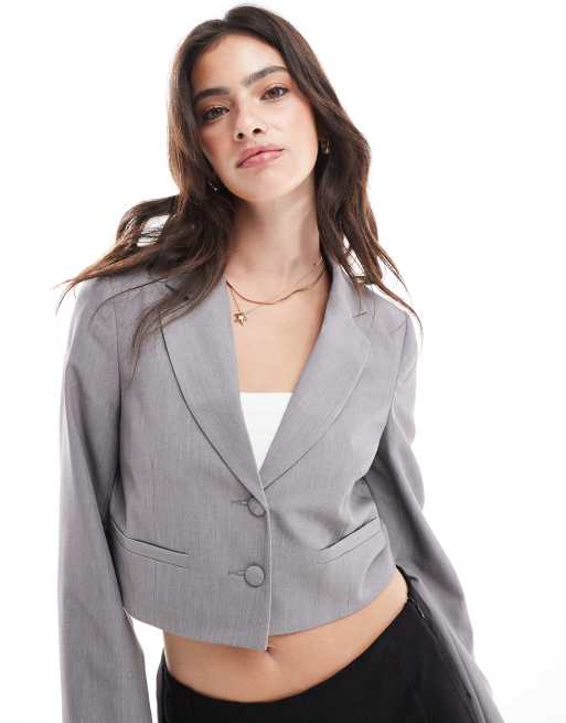 Miss Selfridge – Kurzer Blazer in Grau mit lockerem Schnitt
