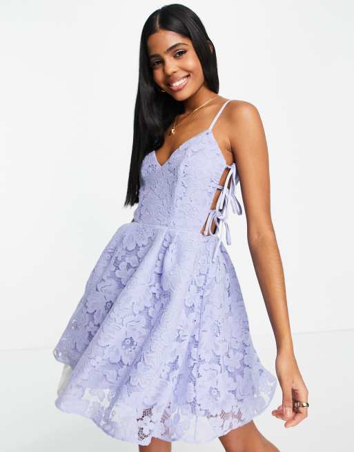 Miss Selfridge – Kurzes Ballkleid aus Spitze in Blau mit seitlicher Schnürung