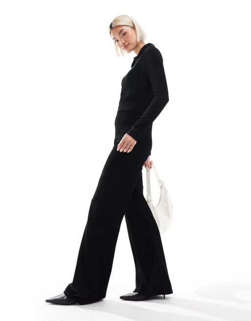 Miss Selfridge – Langärmliger, gerippter Henley-Jumpsuit aus Samt